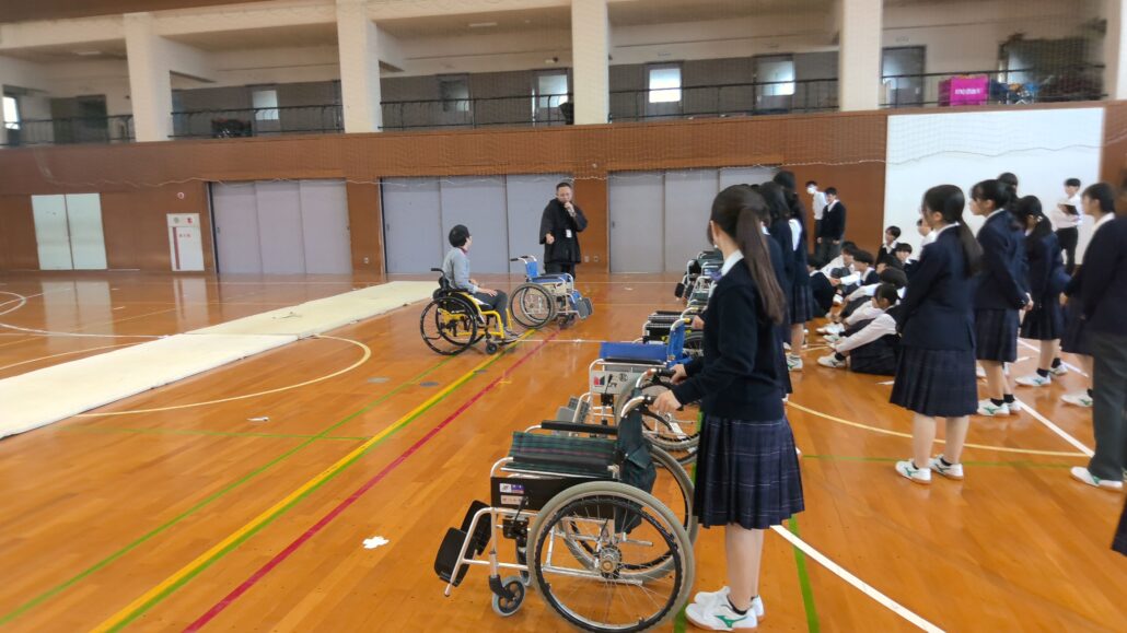 令和7年度 福祉実践教室 2025年11月5日/カテゴリ: 行事レポート /作成者: 江南高校10月27日(月)に、江南市社会福祉協議会様より講師をお招きし、1年生の福祉実践教室を実施しました。 実施講座は、車いす(1組)、知的障がい者軽スポーツ(2組)、高齢者疑似体験(3組)、手話(4組)、盲ろう者通訳ガイド(5組)、点字(6組)、要約筆記(7組)、視覚障がい者ガイド(8組)の8講座です。 どの講座も生徒たちは意欲的に取り組んでいました。 講義と実践により、様々な福祉の在り方について理解を深めることができました。 学んだことを、これからの生活に役立てていきたいと思います。 講師の先生方、ありがとうございました。 https://ko-nan.jp/wp-content/uploads/2025/11/❶車いす.jpg 2286 4064 江南高校 https://ko-nan.jp/wp-content/uploads/2018/01/logo.png 江南高校2025-11-05 08:39:172025-11-05 08:39:17令和7年度 福祉実践教室