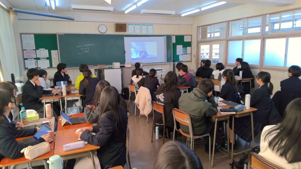 後半はインドネシアの高校生が作成した学校紹介ビデオを視聴し、その後各グループでzoomを繋ぎインドネシアの高校生と英語でフリートークを楽しみました。