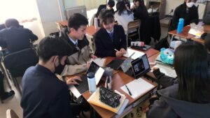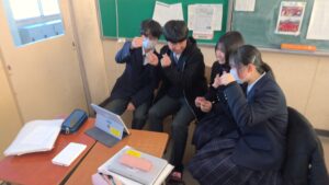 2/3,2/3の二日間に渡り、インドネシアのマカッサルにあるSMK5N Makkasar高校の生徒と2年6組英C・2年8組英Cの授業で文化交流をおこないました。