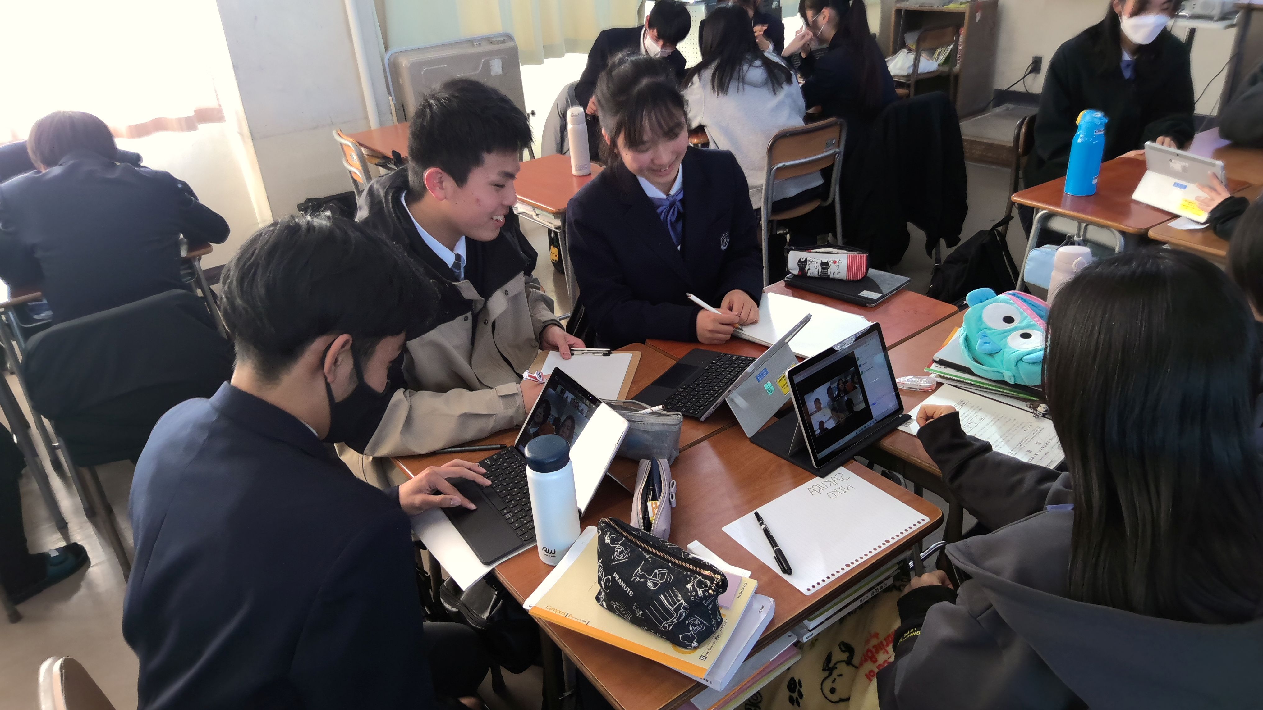 現地とzoomが無事に繋がった時はみんな大喜び!ジェスチャーや絵も用いながら母語の違う生徒同士が英語でコミュニケーションを取ることができた貴重な経験をさせていただきました。